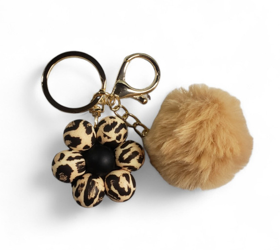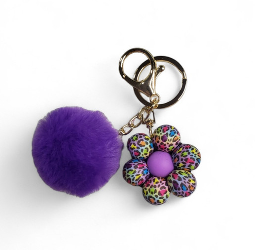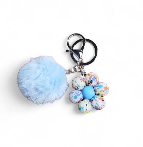 Beautiful Flower Keychain, a whimsical addition to any set of keys. Made with a 1.5 inch pompom and a gold or silver key ring, this keychain is both stylish and functional. The keychain features a combination of colorful silicon beads mixed with luminous beads, giving it a playful and elegant look. Perfect for adding a pop of color to your keys or bag. Add a touch of flair to your everyday essentials with this charming keychain.